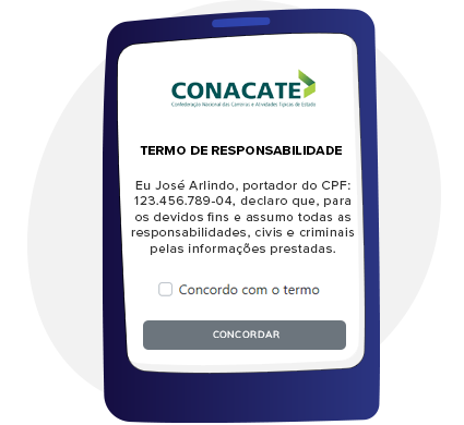 Leia o termo de responsabilidade e, ao fim da tela, clique sobre concordar para prosseguir.