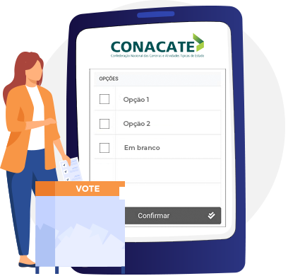 Digite no sistema o código que você recebeu via e-mail ou telefone (SMS e Whatsapp). Após digitar seu código uma nova tela com os termos de aceite do processo eleitoral lhe será apresentada.